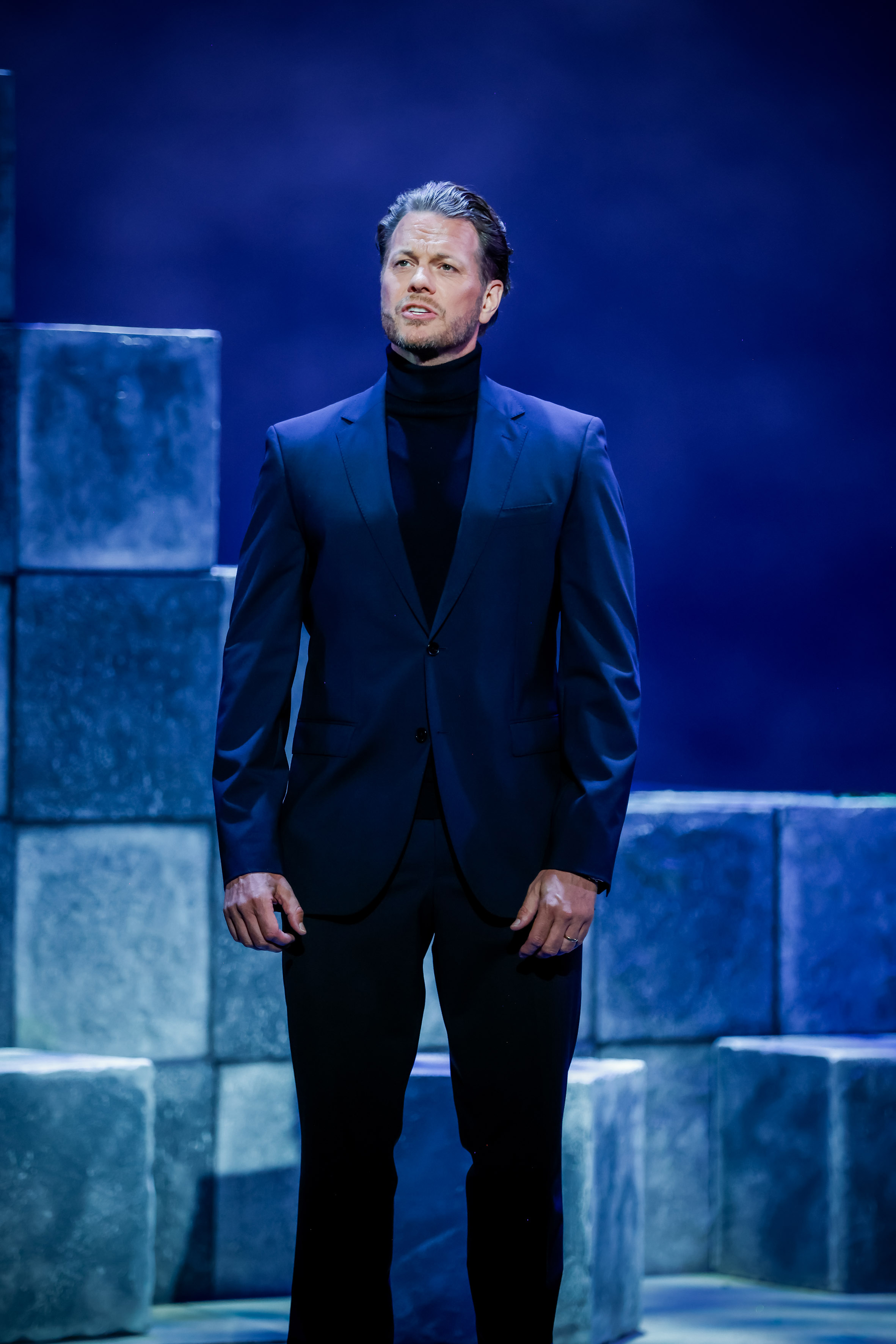 Als Anatoly Sergievsky steht Mark Seibert auf der Bühne – in einer konzentrierten und überzeugenden Darstellung des sowjetischen Schachchampions, der zwischen Systemtreue und persönlicher Freiheit hin- und hergerissen ist. Seinen großen gesanglichen Moment hat Seibert im Finale des ersten Aktes mit der „Hymne“ (Anthem), in der Anatoly seiner Heimat mit kraftvoller Stimme ein bewegendes Bekenntnis widmet. Im zweiten Akt gewinnt die Figur weiter an Profil: Während des Endspiels löst sich Anatoly von allen äußeren Einflüssen und entscheidet sich, nur noch seinem eigenen Gewissen zu folgen. Seibert gelingt es, diesen inneren Wendepunkt schauspielerisch nuanciert und glaubwürdig zu gestalten.