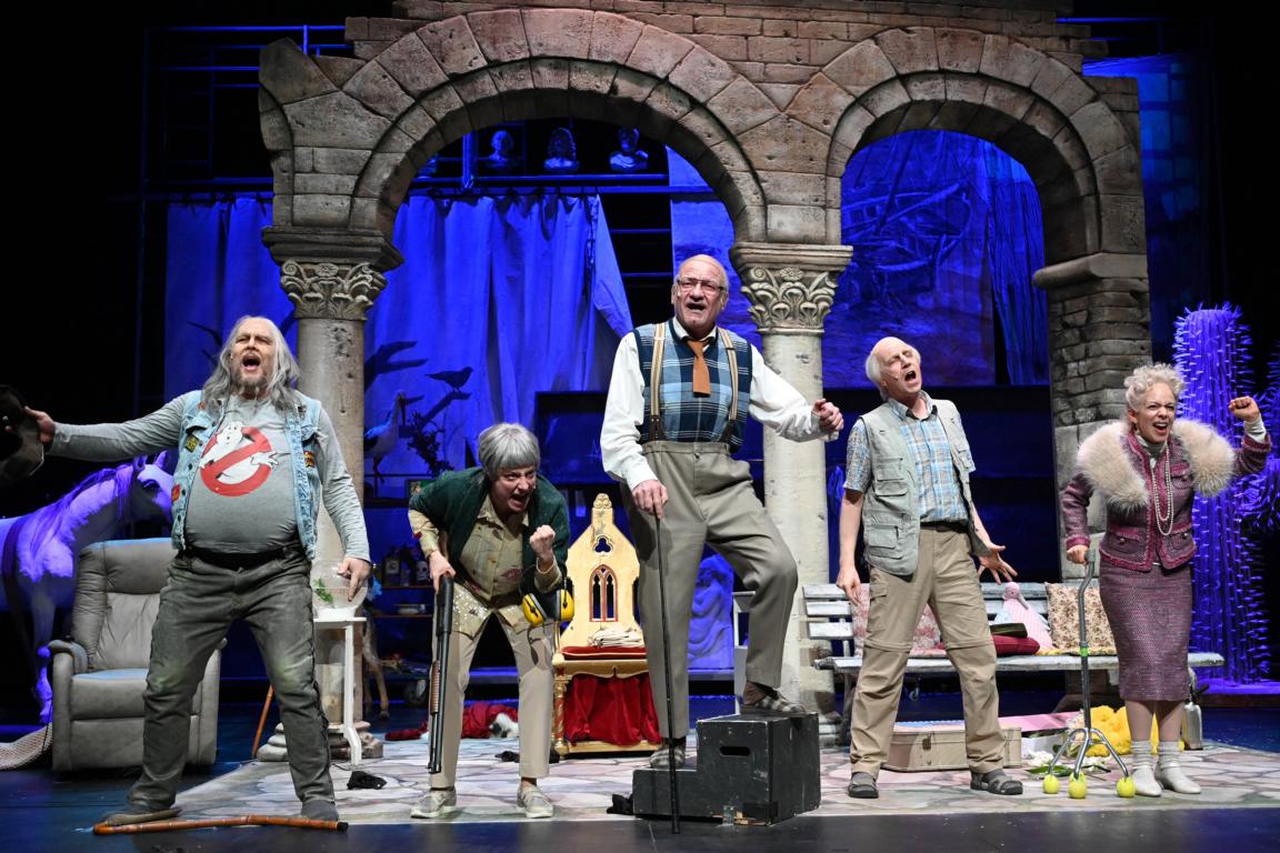 Eine Gruppe hochbetagter, ehemaliger Schauspieler trifft sich regelmäßig, um in Erinnerungen zu schwelgen und ihre Erfolge zu feiern. Unter dem harten Zepter ihrer Altenpflegerin werden sie mit albernen Spielchen und bösartigen Bemerkungen an ihre Gebrechlichkeit erinnert und an vermeintliche Grenzen geführt. „Ewig jung“ ist aber auch ein Angriff auf die Lachmuskeln, der legendäre Pop- und Rockklassiker mit schwarzem Humor und einem Hauch Melancholie vereint.